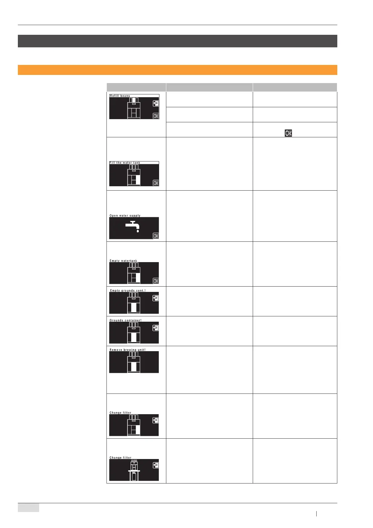 Bean hopper is empty. Refer to display. Refill the bean ►