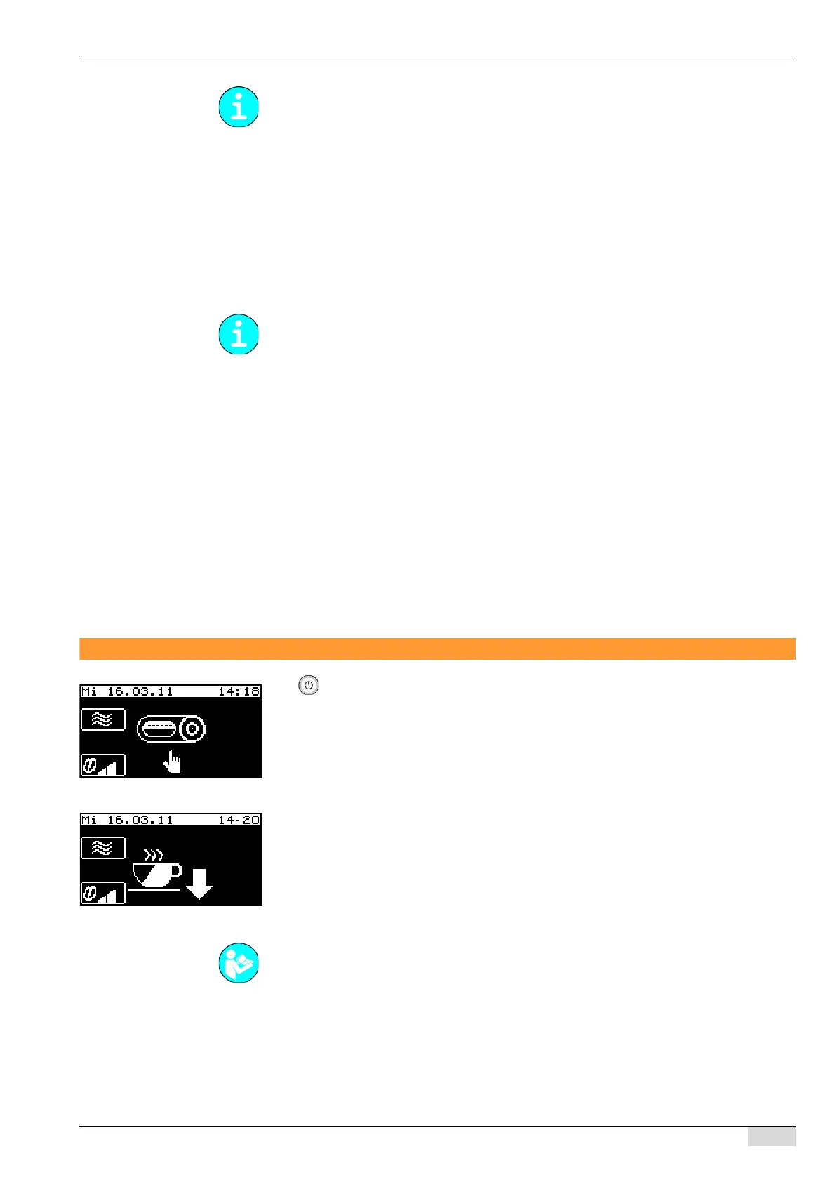 The "Ready for operation" main window appears as soon as the coffee machine is