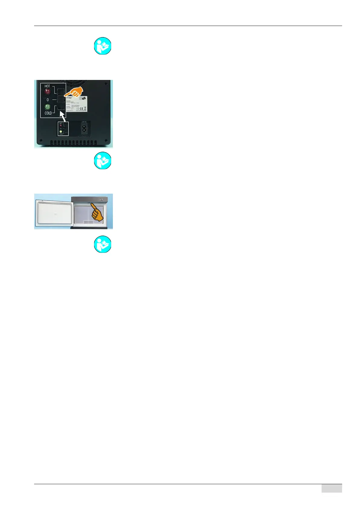 ► Connect the "Fridge" side cooling unit to the mains power supply.