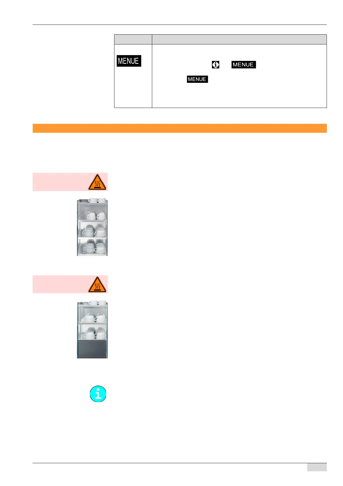 ► Place cups on the heated storage surfaces.