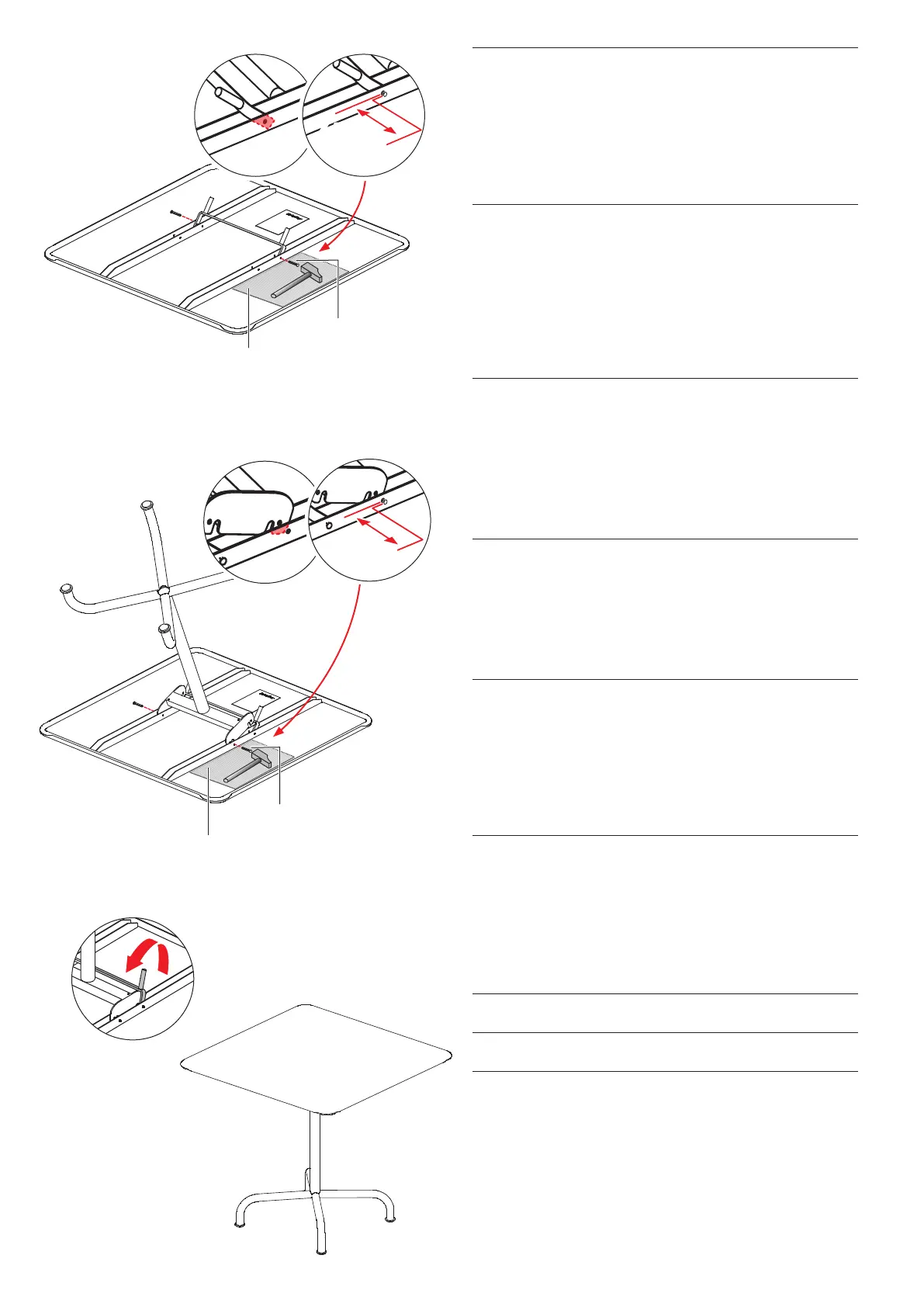 Fixer le piètement avec l’étrier de fixation. Retourner la table à