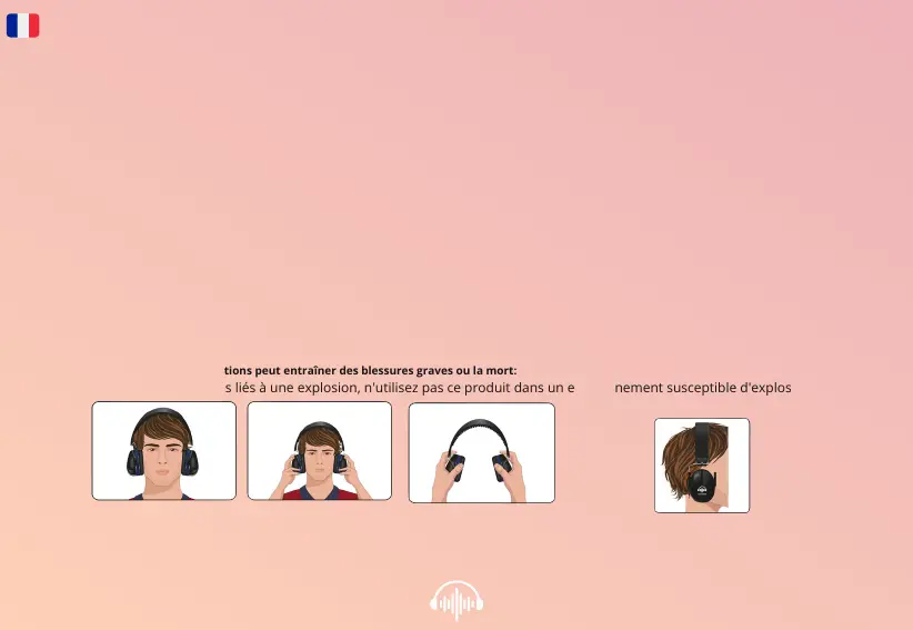 Attention: Cette protection auditive permet de réduire l'exposition aux bruits dangereux et autres sons forts. Une mauvaise