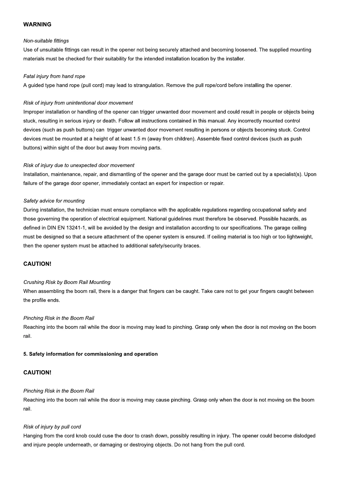 Schartec Move 1200 - Safety Warnings and Hazards; Material and Handling Risks; Commissioning and Operation Safety