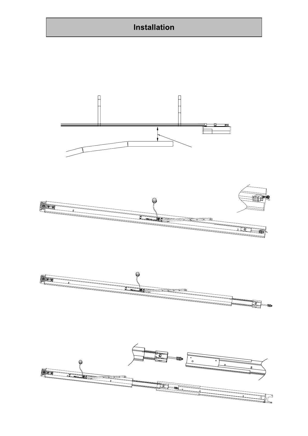 A distance of 30 mm and a maximum of 400 mm is required between the rails and the door in order to mount