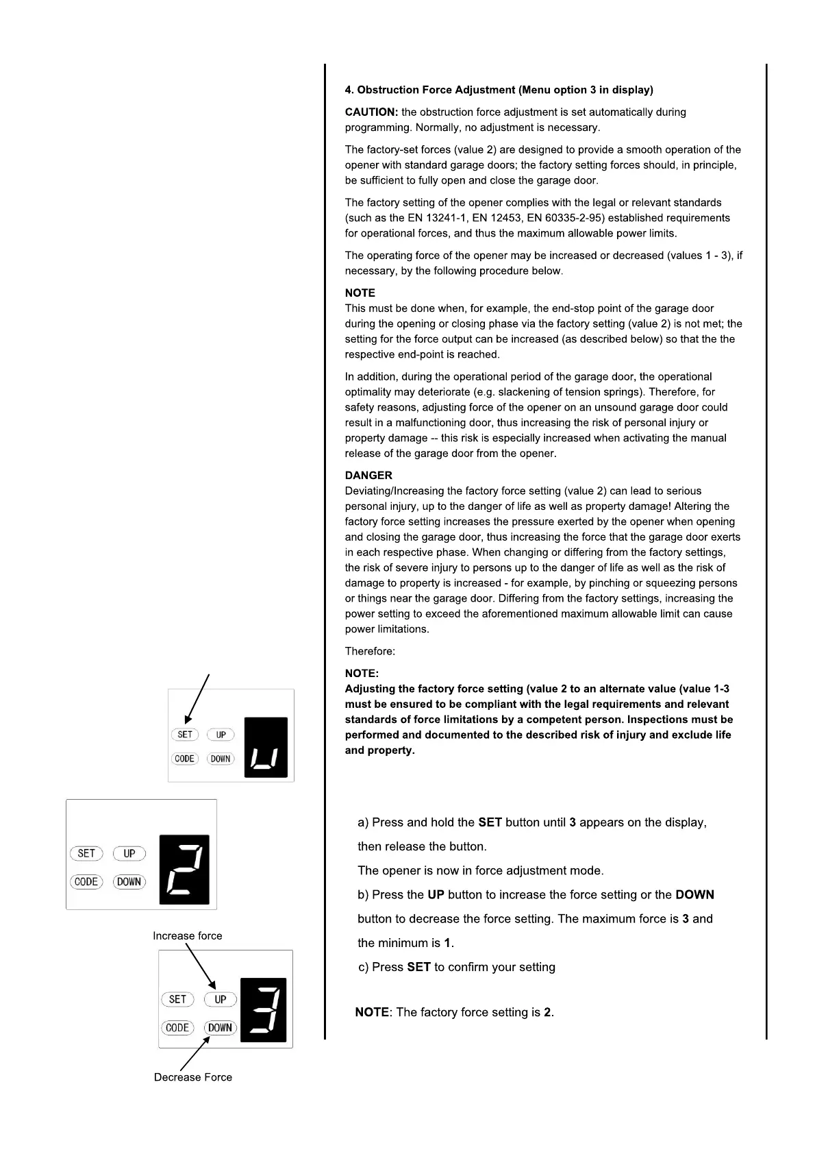 Schartec Move 1200 - Obstruction Force Adjustment; Force Setting and Safety Warnings