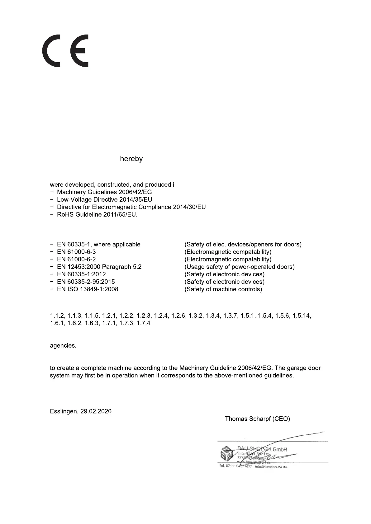 in accordance with the Machinery Guidelines 2006/42/EG,