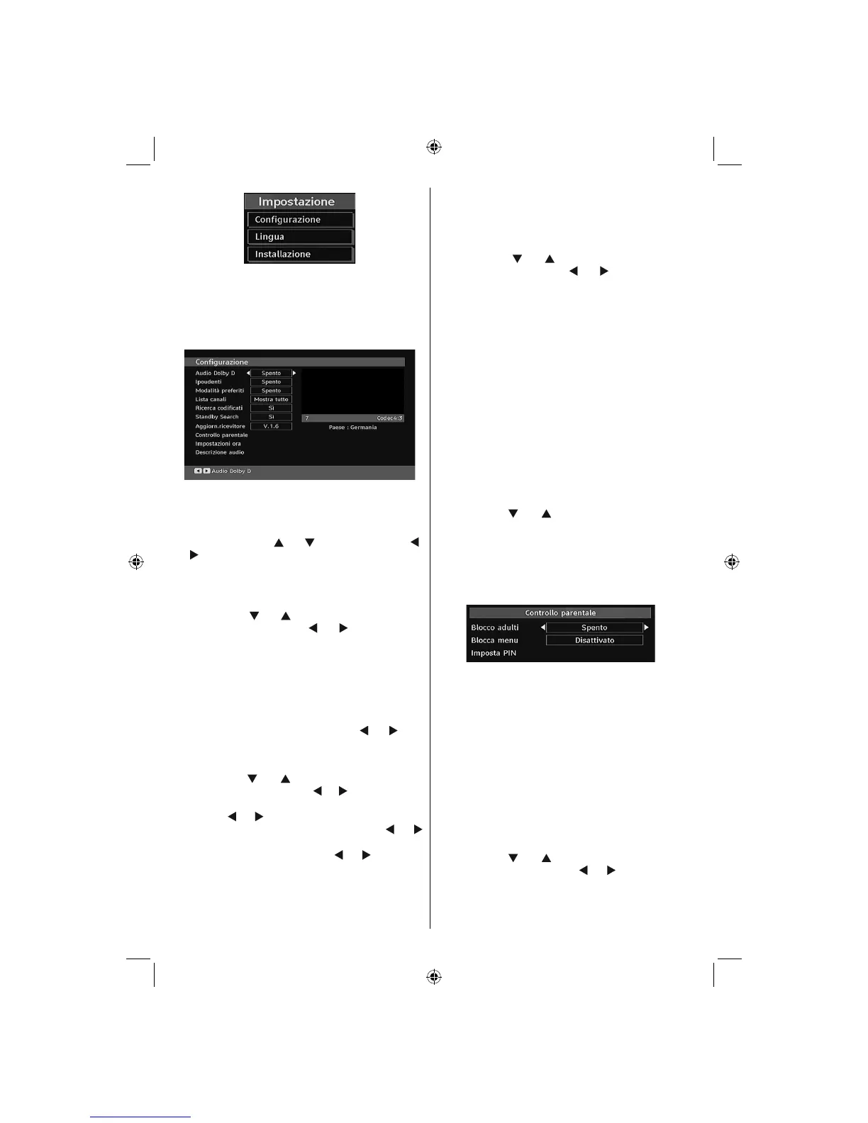 “Blocco genitori”. Premere il tasto OK per entrare nel