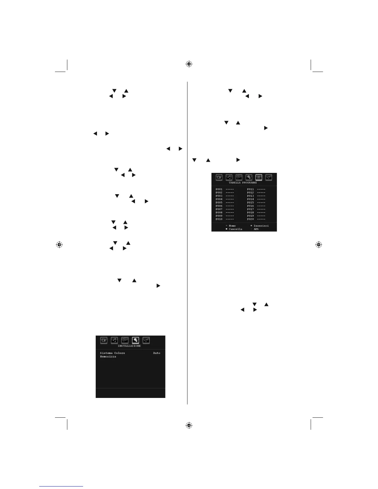 colore. Usare il tasto “ ” o “ ” per cambiare il sistema