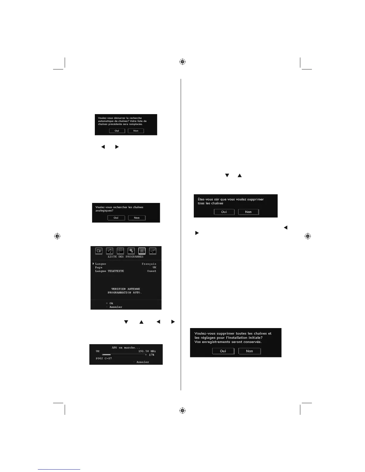 Effacer la liste des chaînes, puis appuyez sur OK. L’OSD