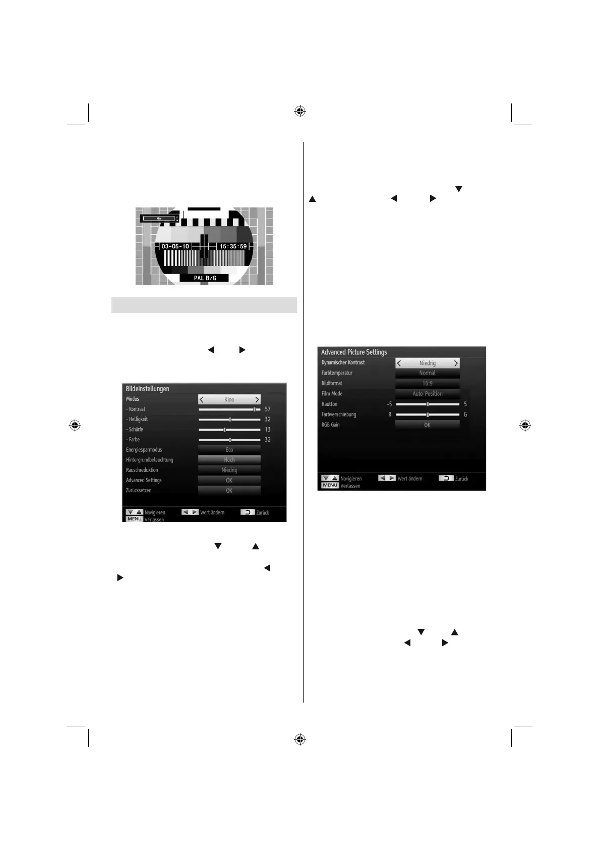Sie die Taste OK, um das Menü Bildeinstellungen
