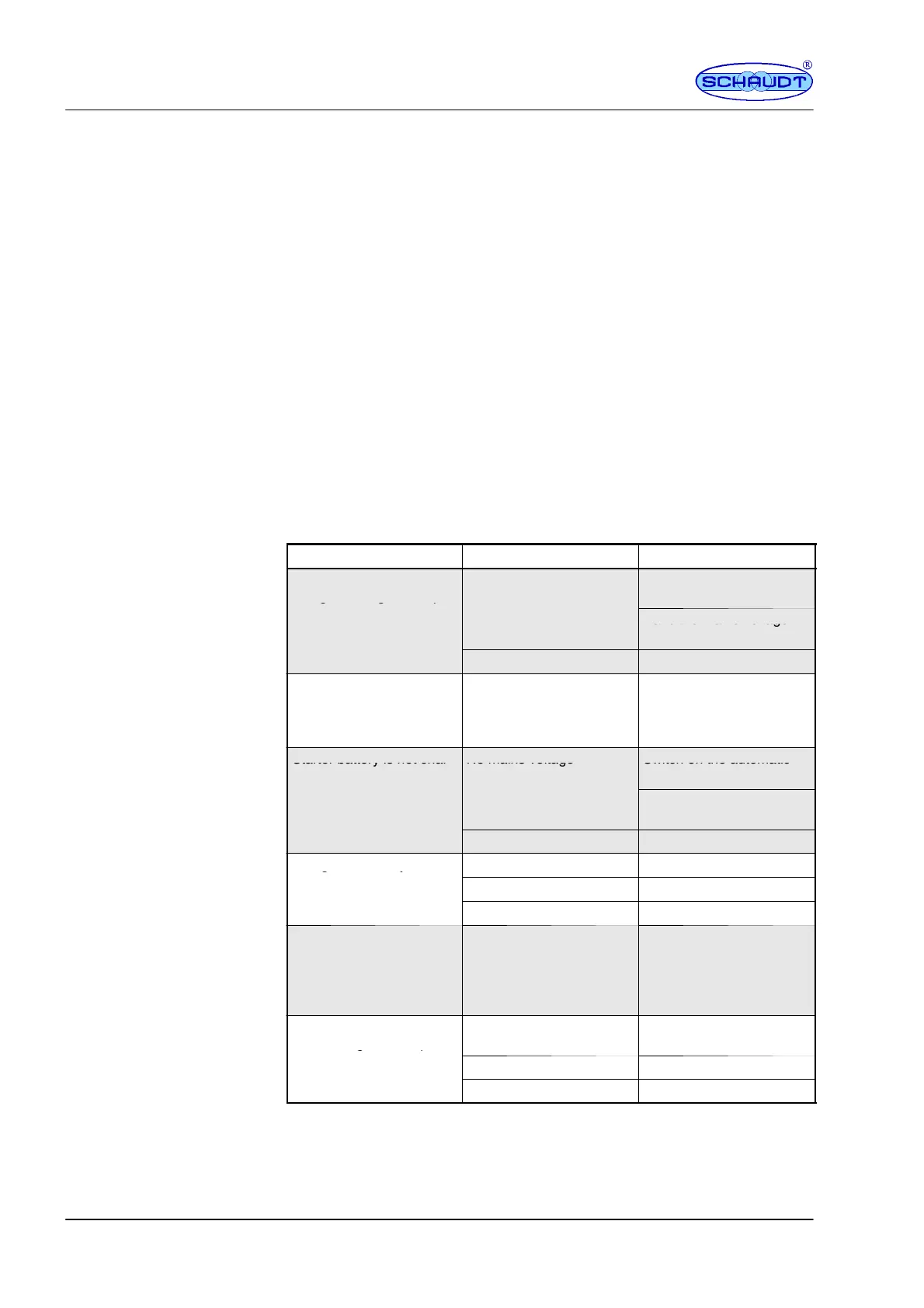 Starter battery is not char- No mains voltage Switch on the automatic