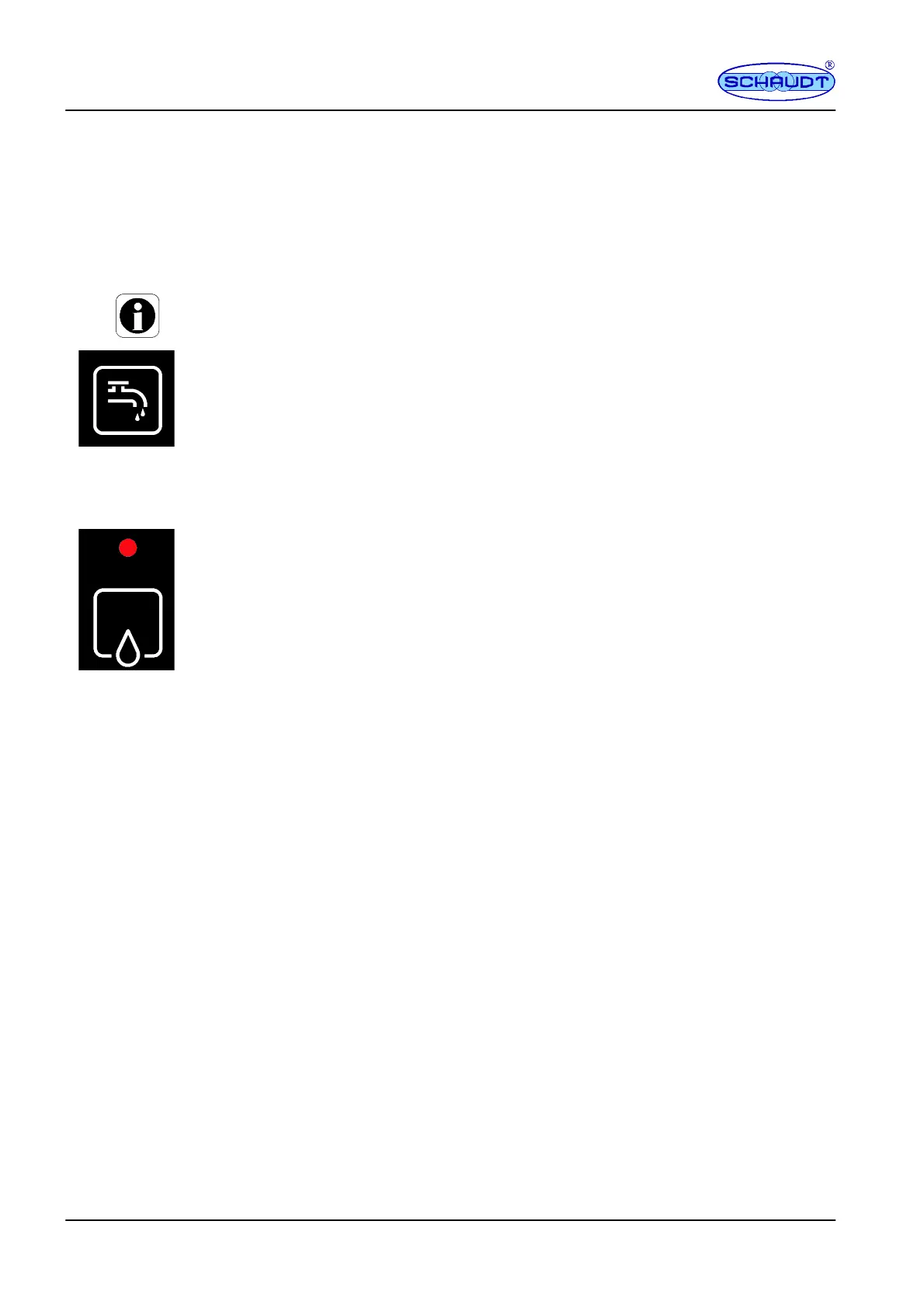 F The red LED above the ”Waste water tank” symbol shows the current switch state.