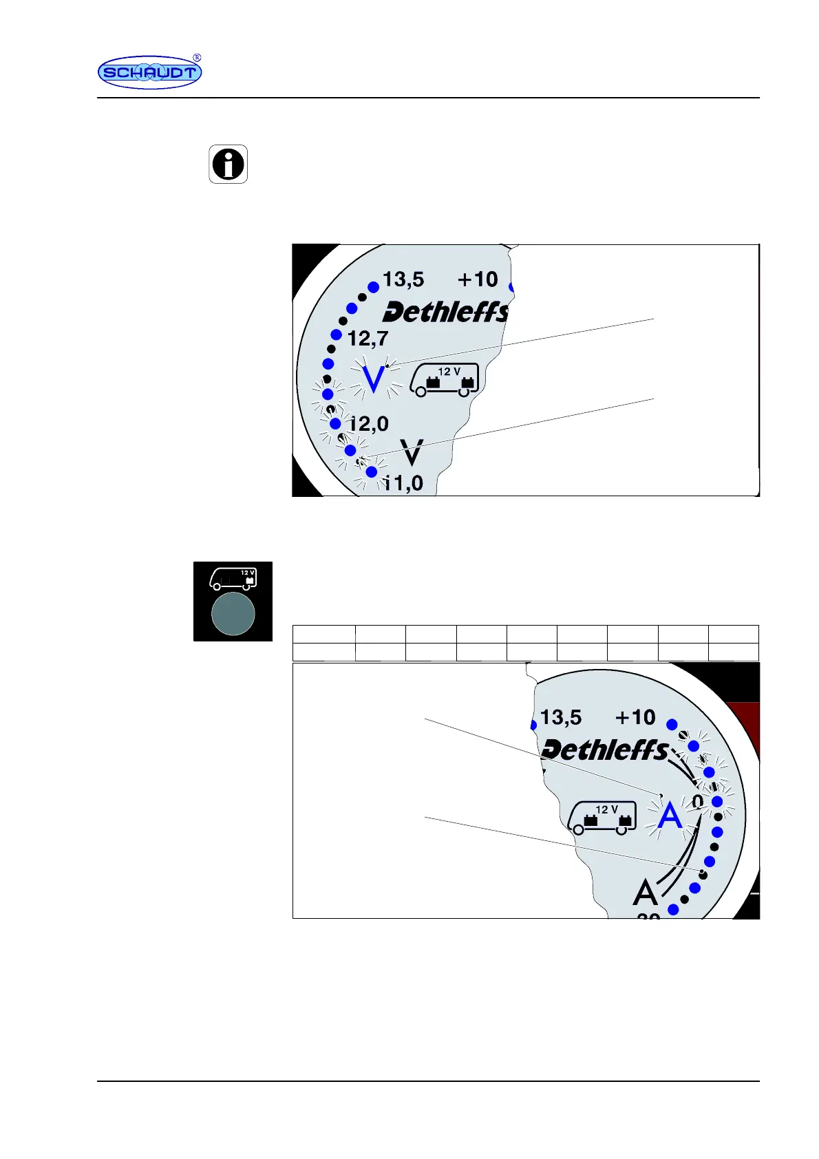 display field (left scale, Fig 2, Pos. 2), 12.2V in this example.