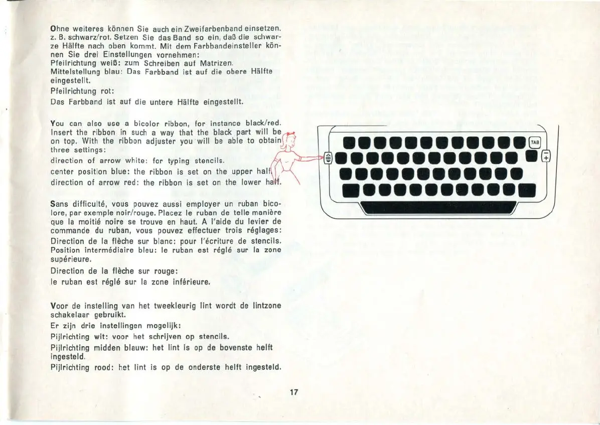 Das Farbband ist auf die untere Hälfte eingestellt.