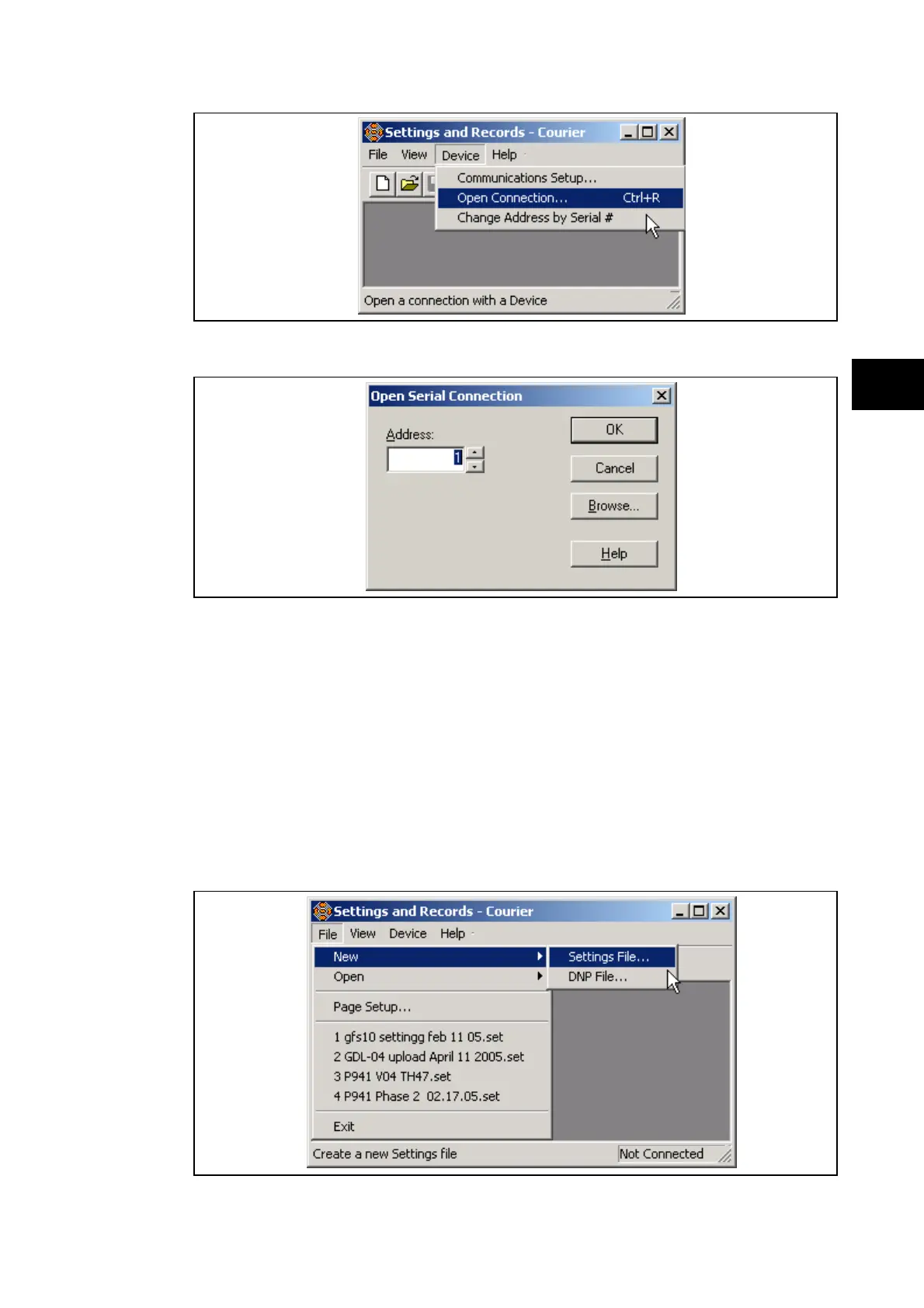 off-line tool to prepare settings without access to the relay. In order to open a default setting