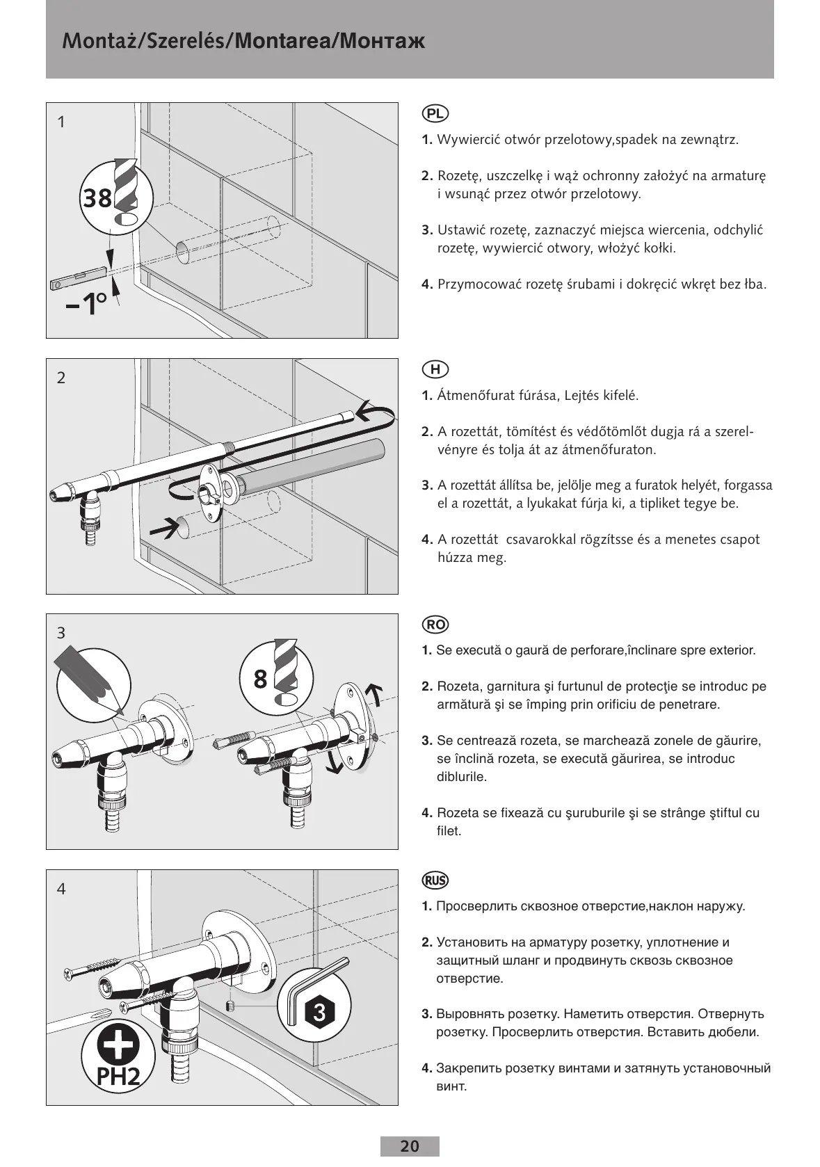 Montaż/Szerelés/Montarea/Монтаж
