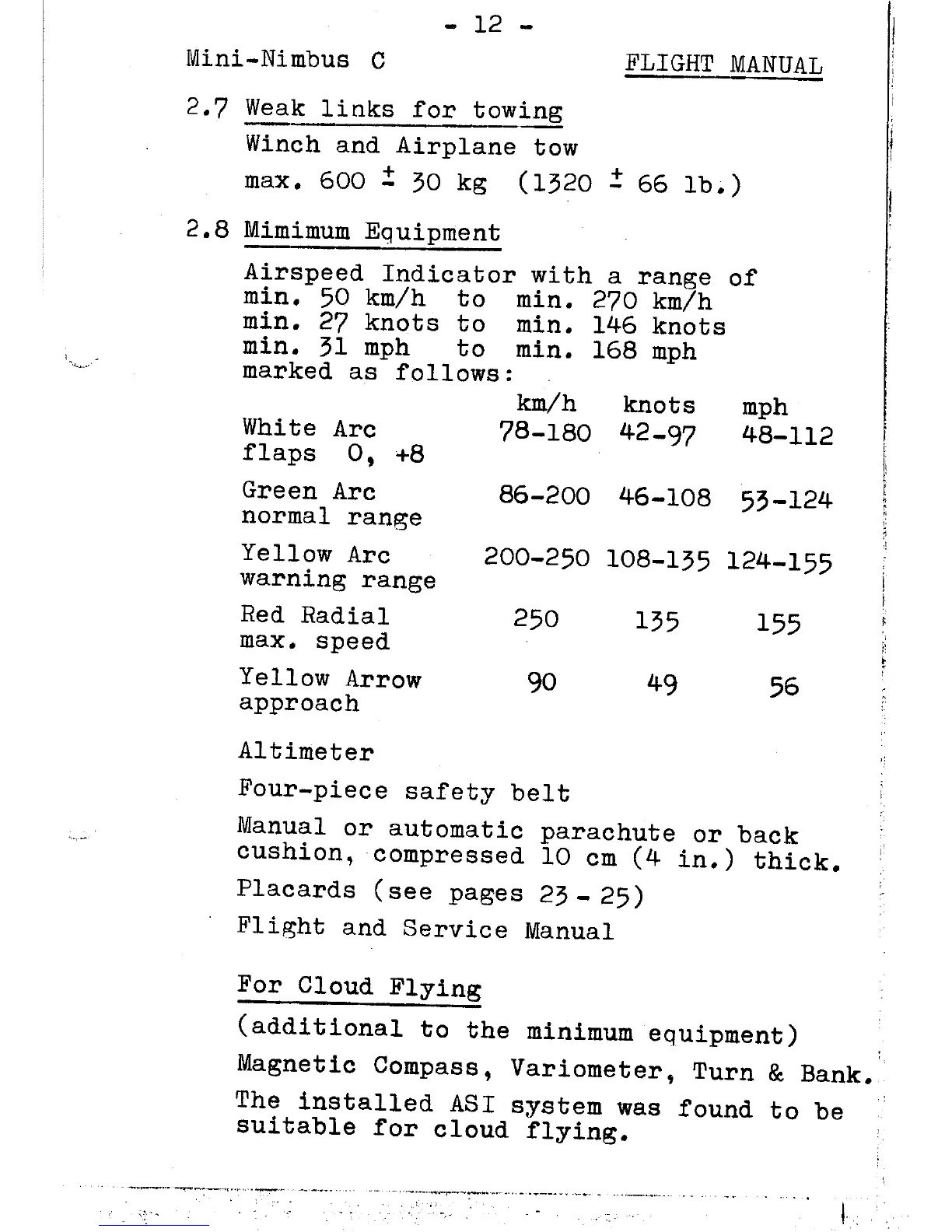 Schempp-Hirth Mini-Nimbus C - 3.2 Malfunction; 3.3 Emergency Exit