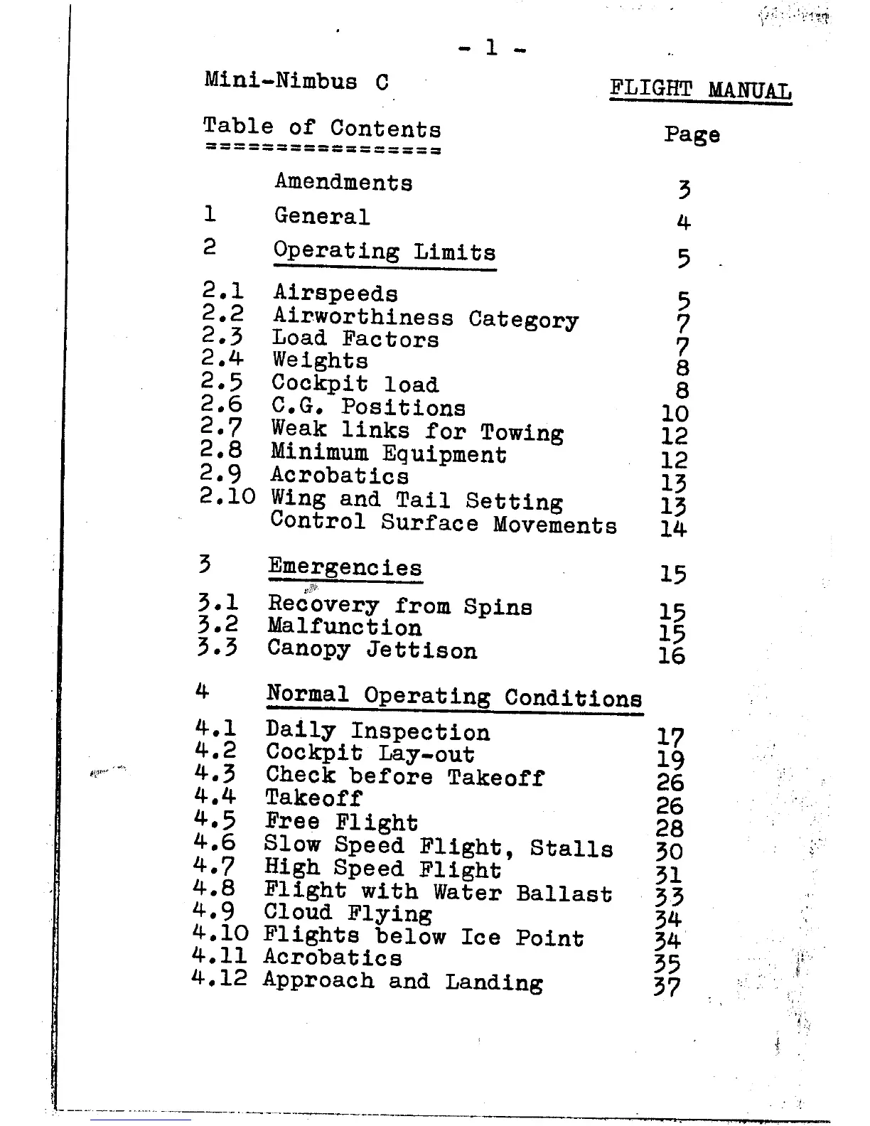 Schempp-Hirth Mini-Nimbus C - Table of Contents