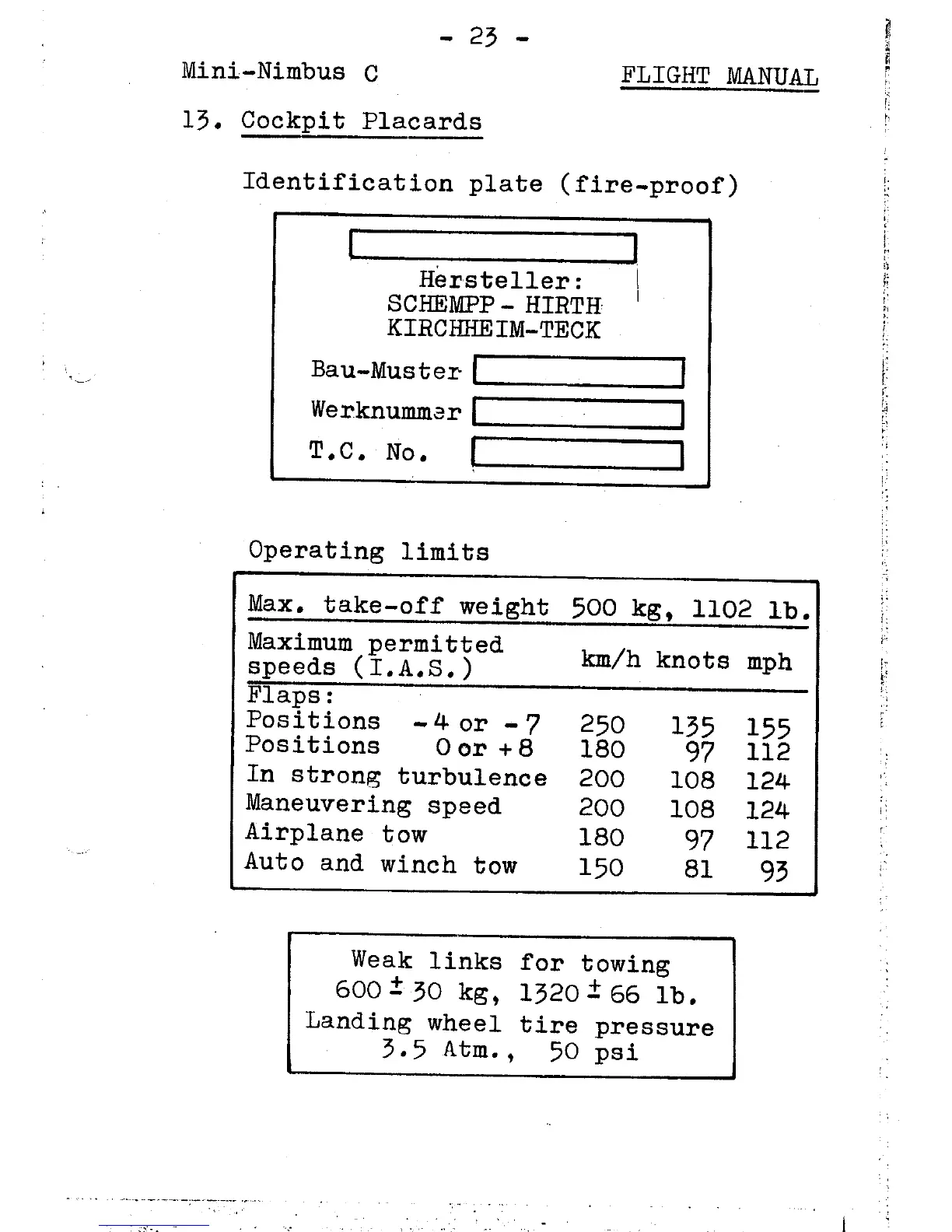 Schempp-Hirth Mini-Nimbus C - Cockpit Placards