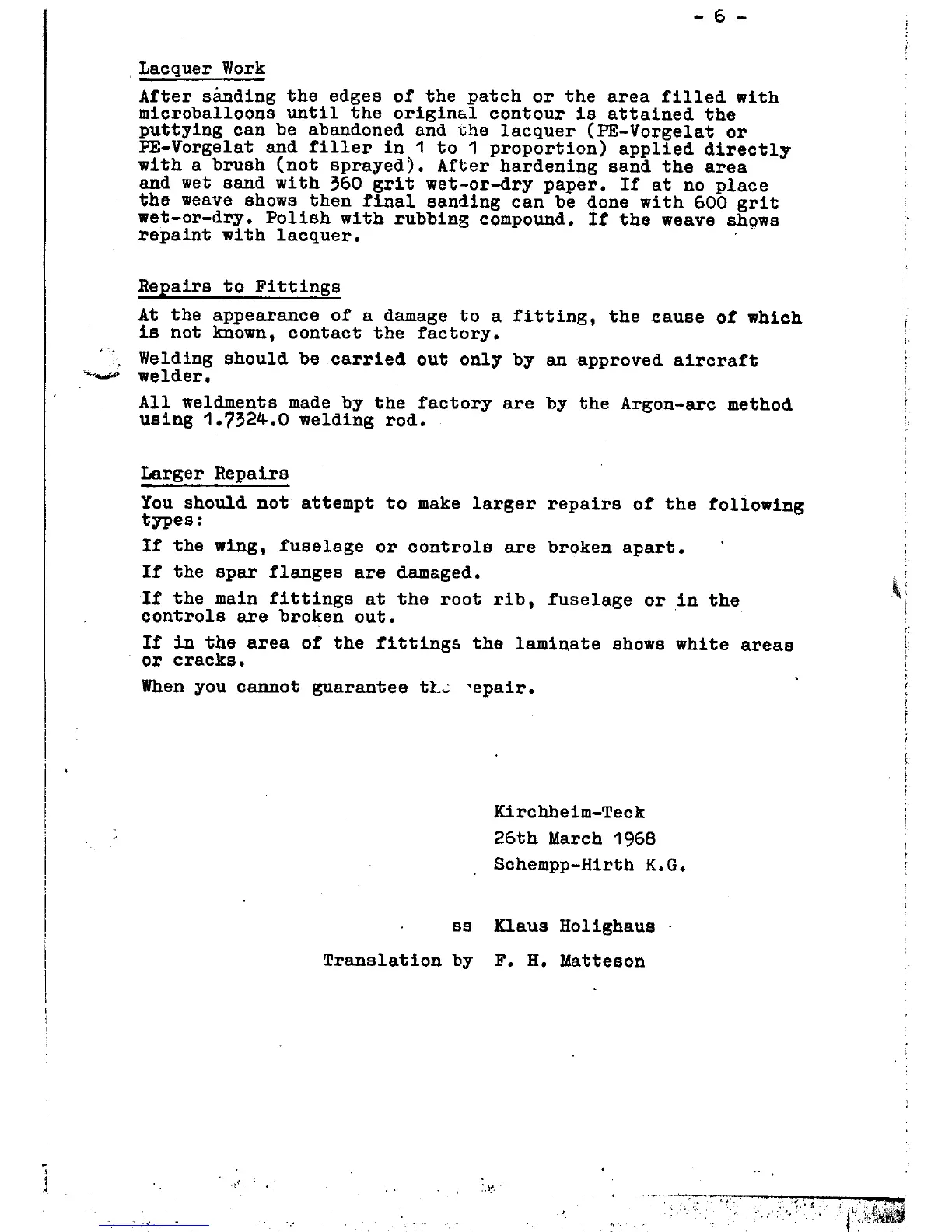 Schempp-Hirth Mini-Nimbus C - Lacquer Work; Repairs to Fittings; Larger Repairs