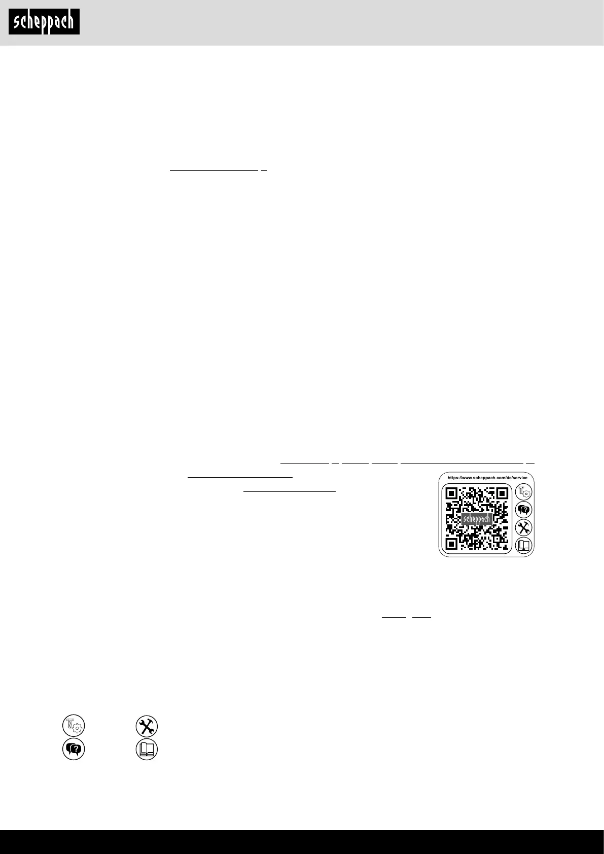 Telefon: +800 4002 4002 (Service-Hotline/Freecall Rufnummer dt. Festnetz**) · Telefax +49 [0] 8223 4002 20 · E-Mail: service@scheppach.com · Internet: http://www.scheppach.com