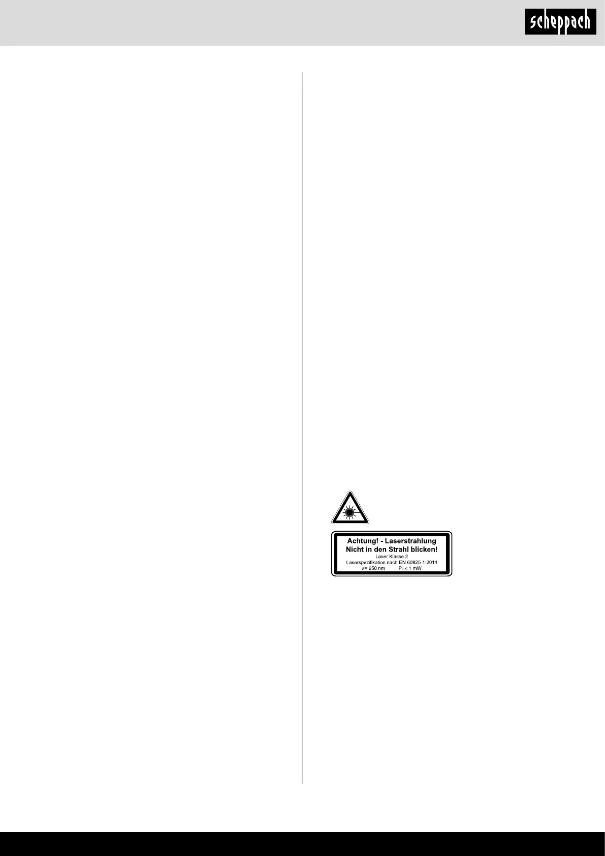 • Repairs of the laser may only be carried out by the