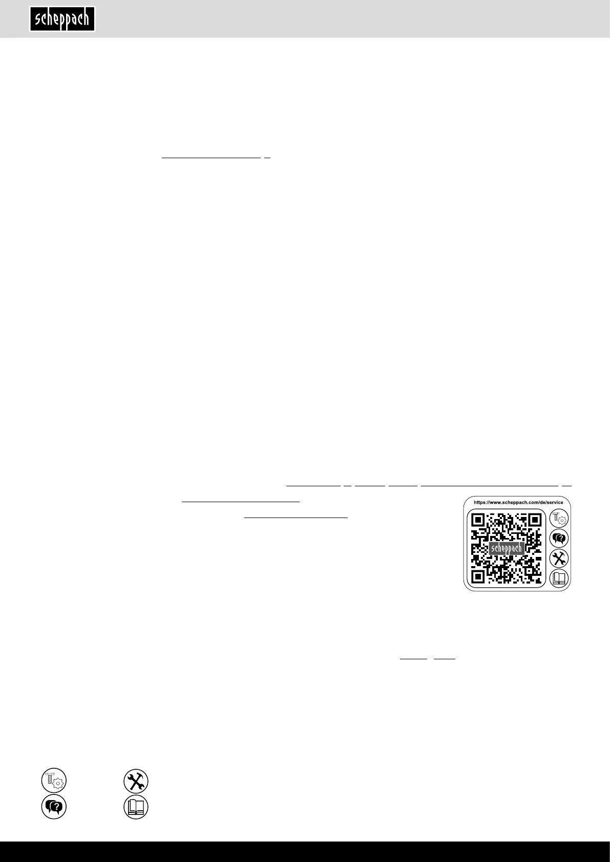Telefon: +800 4002 4002 (Service-Hotline/Freecall Rufnummer dt. Festnetz**) · Telefax +49 [0] 8223 4002 20 · E-Mail: service@scheppach.com · Internet: http://www.scheppach.com
