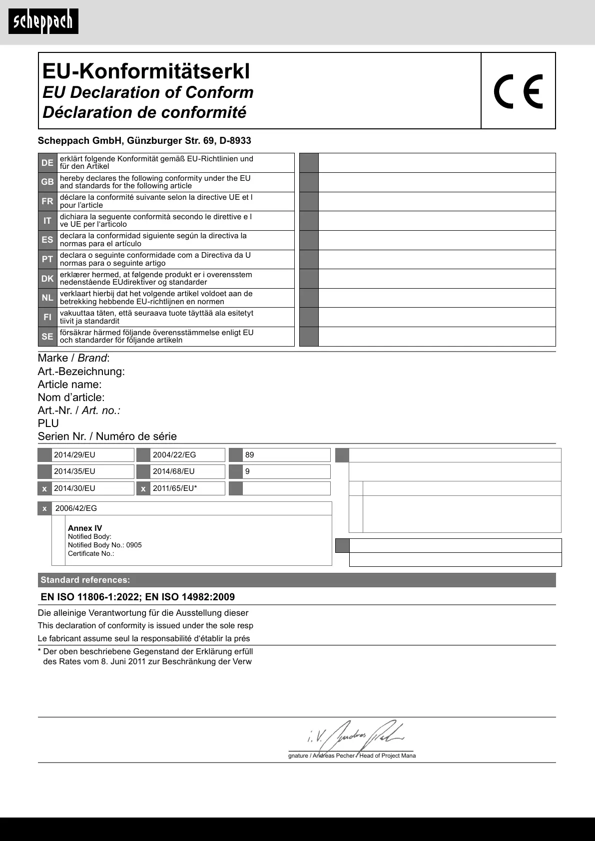 EU-Konformitätserklärung Originalkonformitätserklärung