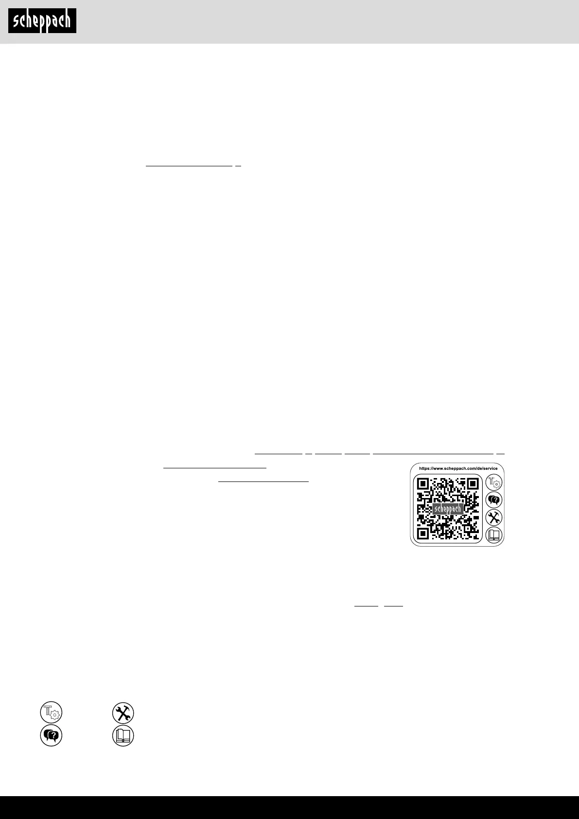 Telefon: +800 4002 4002 (Service-Hotline/Freecall Rufnummer dt. Festnetz**) · Telefax +49 [0] 8223 4002 20 · E-Mail: service@scheppach.com · Internet: http://www.scheppach.com