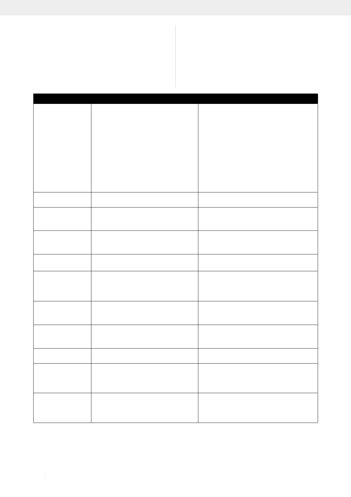 The table below contains a list of fault symptoms and