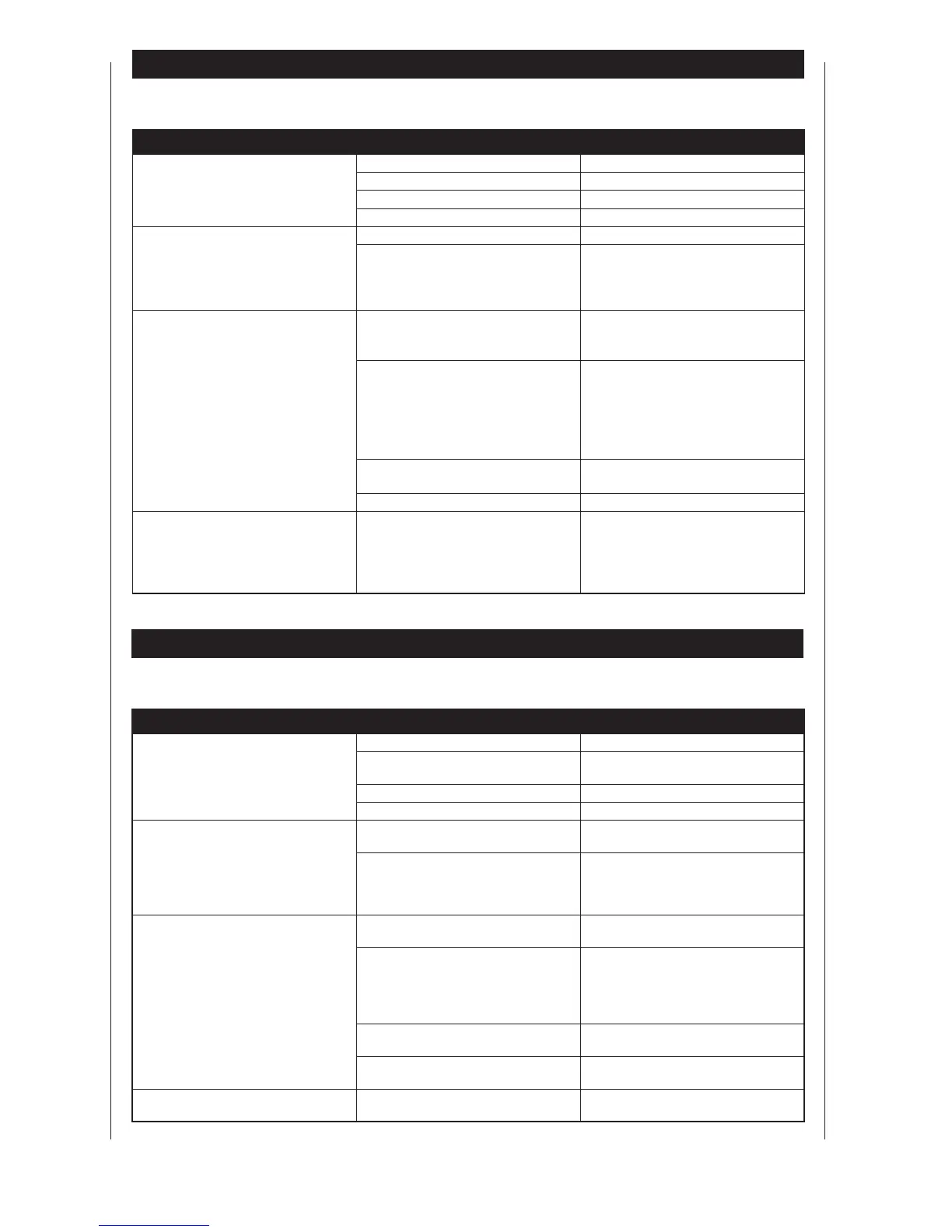 Troubleshooting table