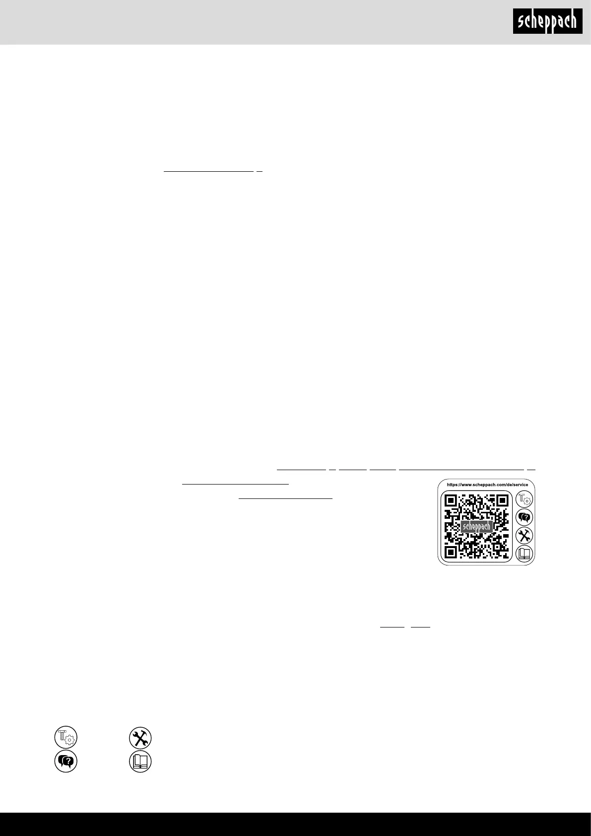 Telefon: +800 4002 4002 (Service-Hotline/Freecall Rufnummer dt. Festnetz**) · Telefax +49 [0] 8223 4002 20 · E-Mail: service@scheppach.com · Internet: http://www.scheppach.com