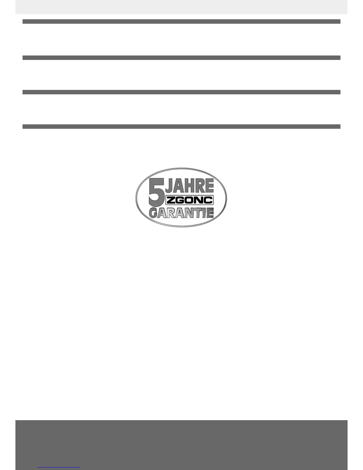 Ausgenommen von der 5 Jahre Zgonc - Garantie sind Mängel, die nicht auf einen Material- oder Herstellungsfehler, sondern