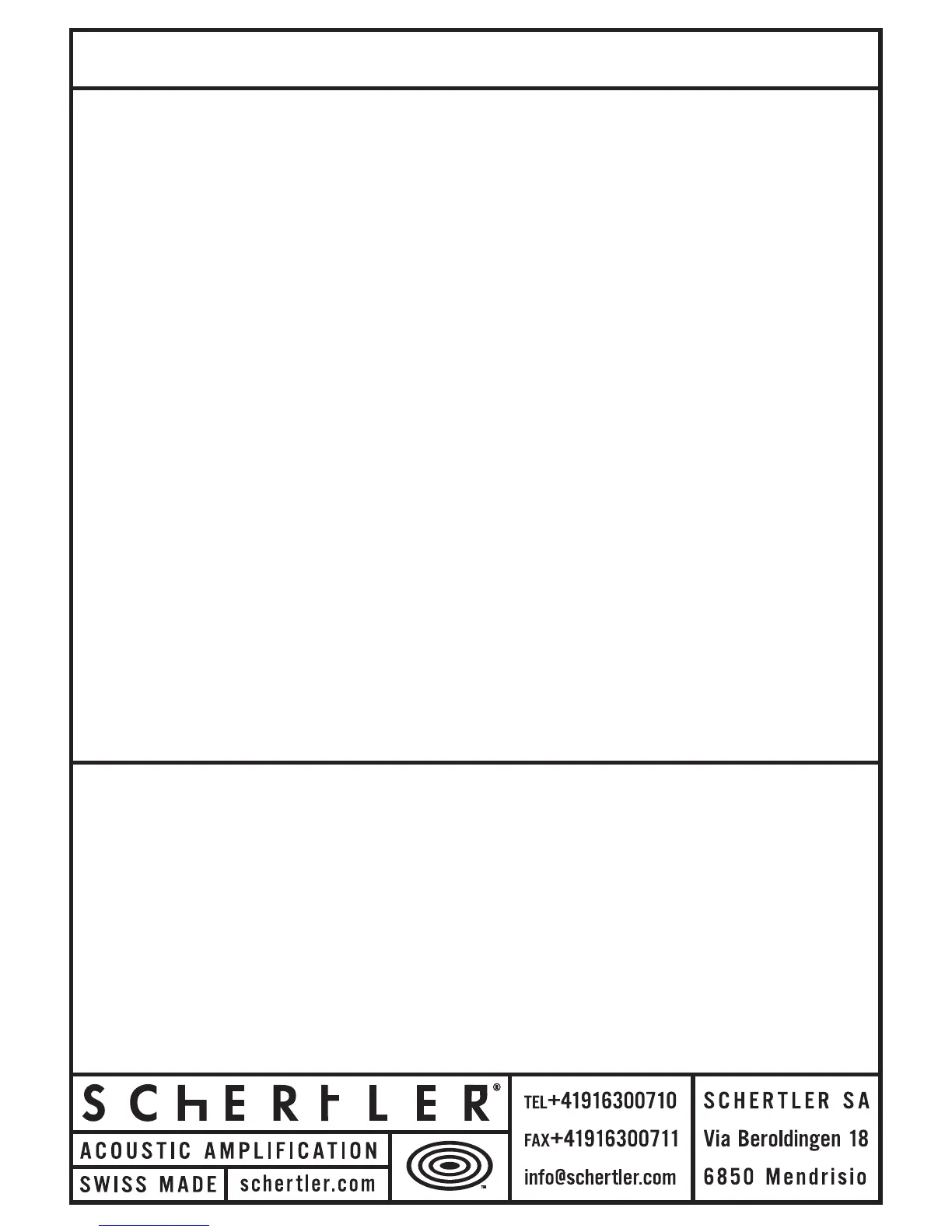THE SCHERTLER® NAME/LOGO ARE REGISTERED TRADE-NAMES/ TRADEMARKS OF SCHERTLER SA, SWITZERLAND.