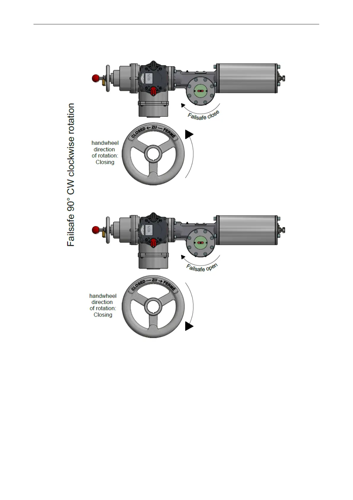 7.2.3 Direction of rotation handwheel for closing the valve, Failsafe direction „CW“