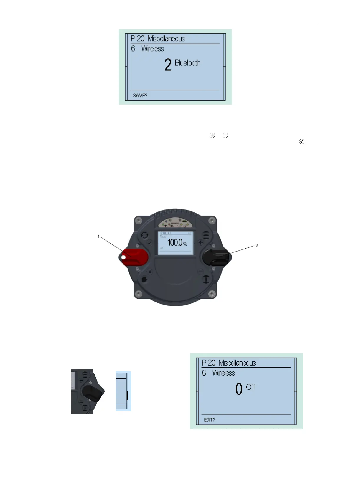 By way of example, we will change parameter P20.6 (wireless) from 0 (wireless off) to 2 (Bluetooth communication on).