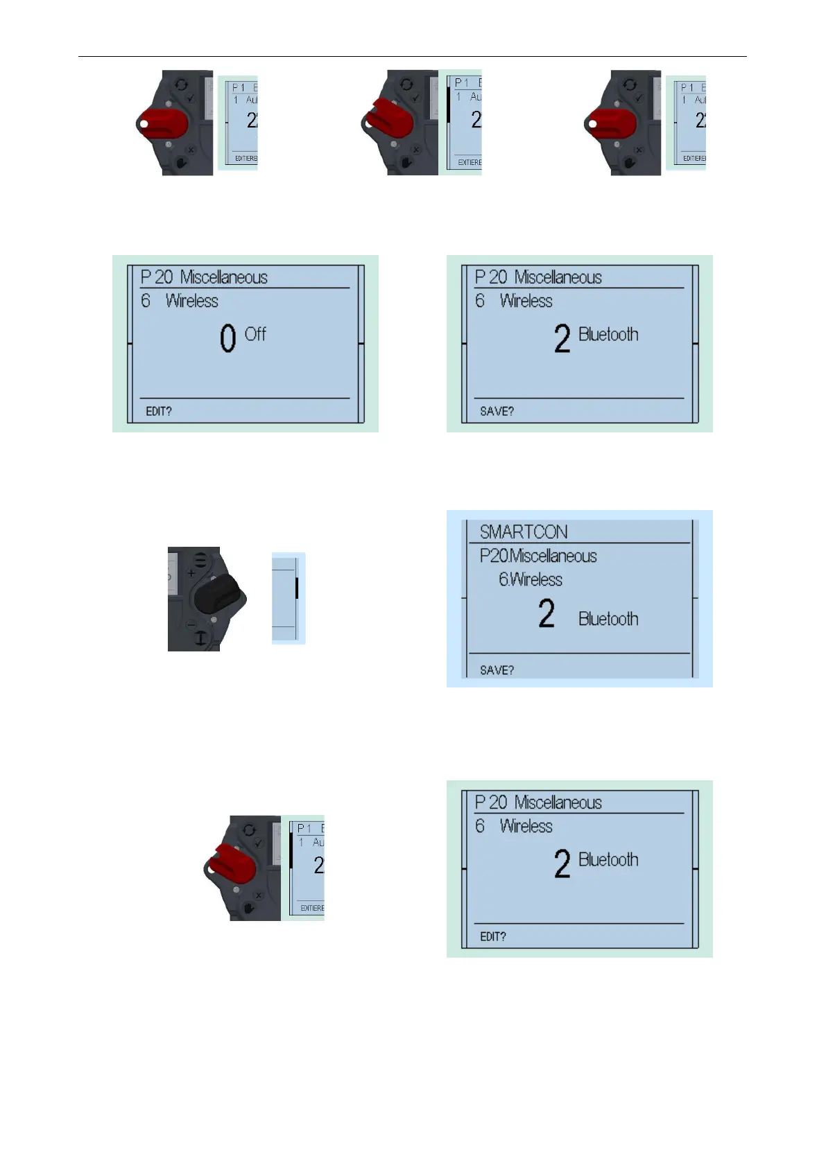 Thereafter, flip up the control switch (toward ) to change the value from 0 (off) to 2 (Bluetooth)