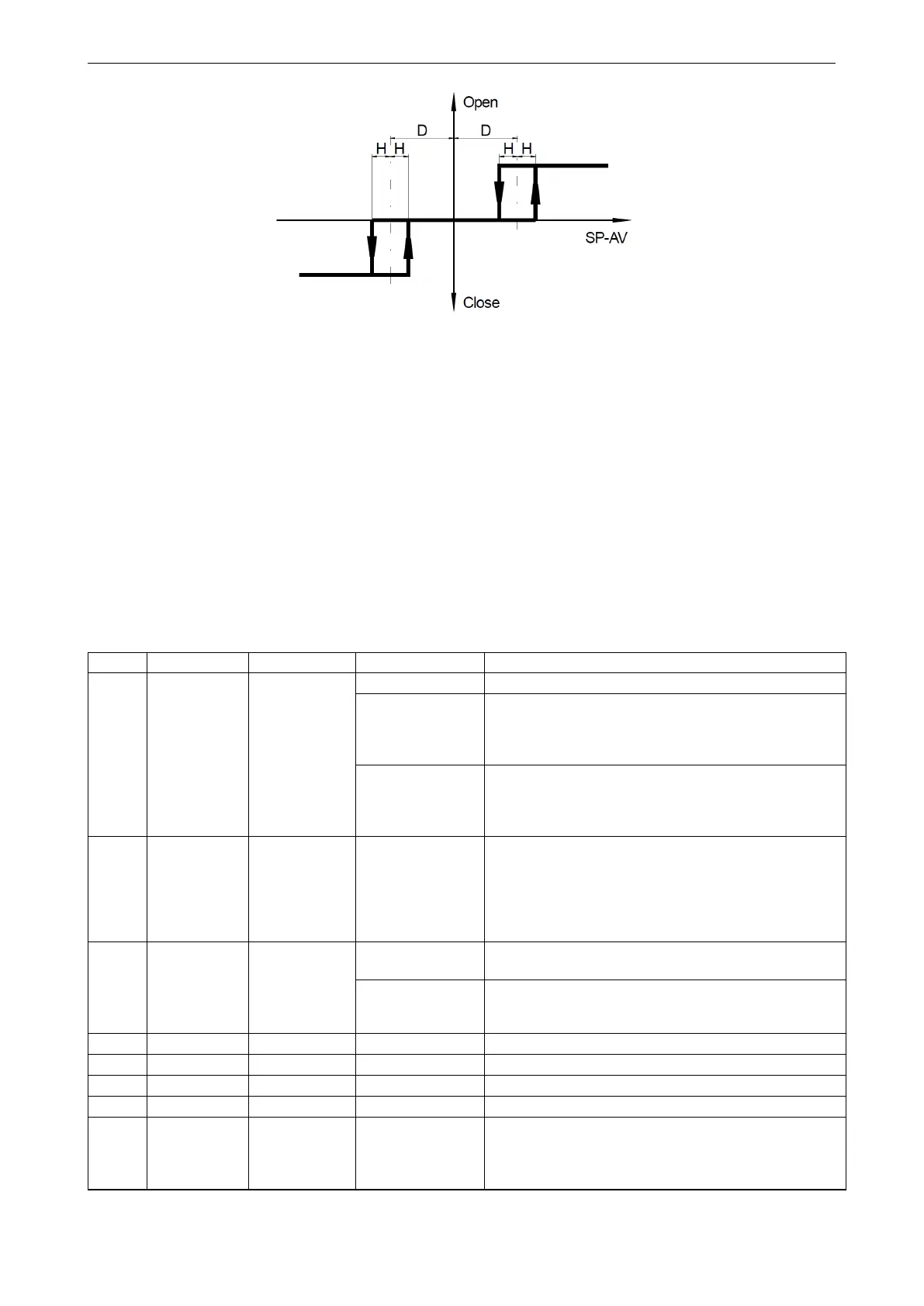 thus the hysteresis on the 49% dead band threshold is at 48.5% and 49.5%. The actuator will move toward 50%, if the