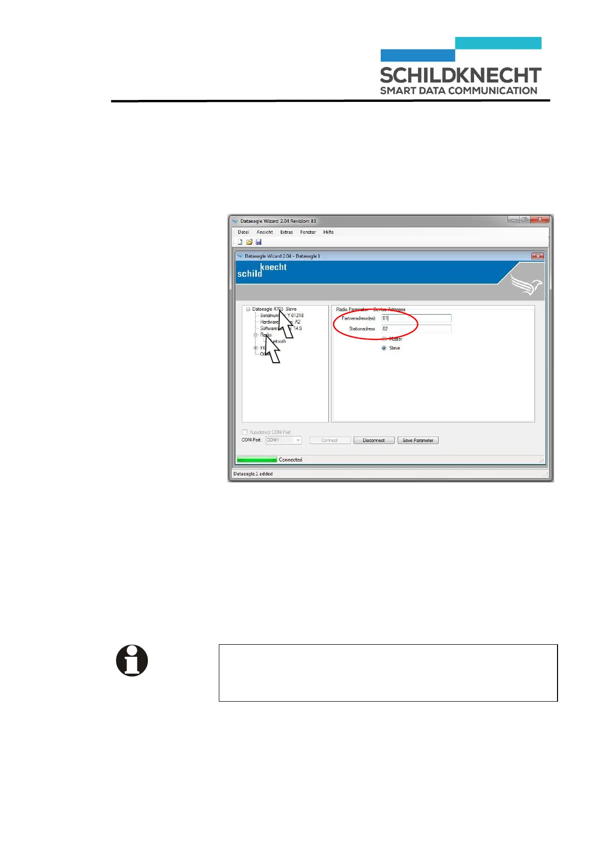 The Radio Slave has station address 02. The partner ad-
