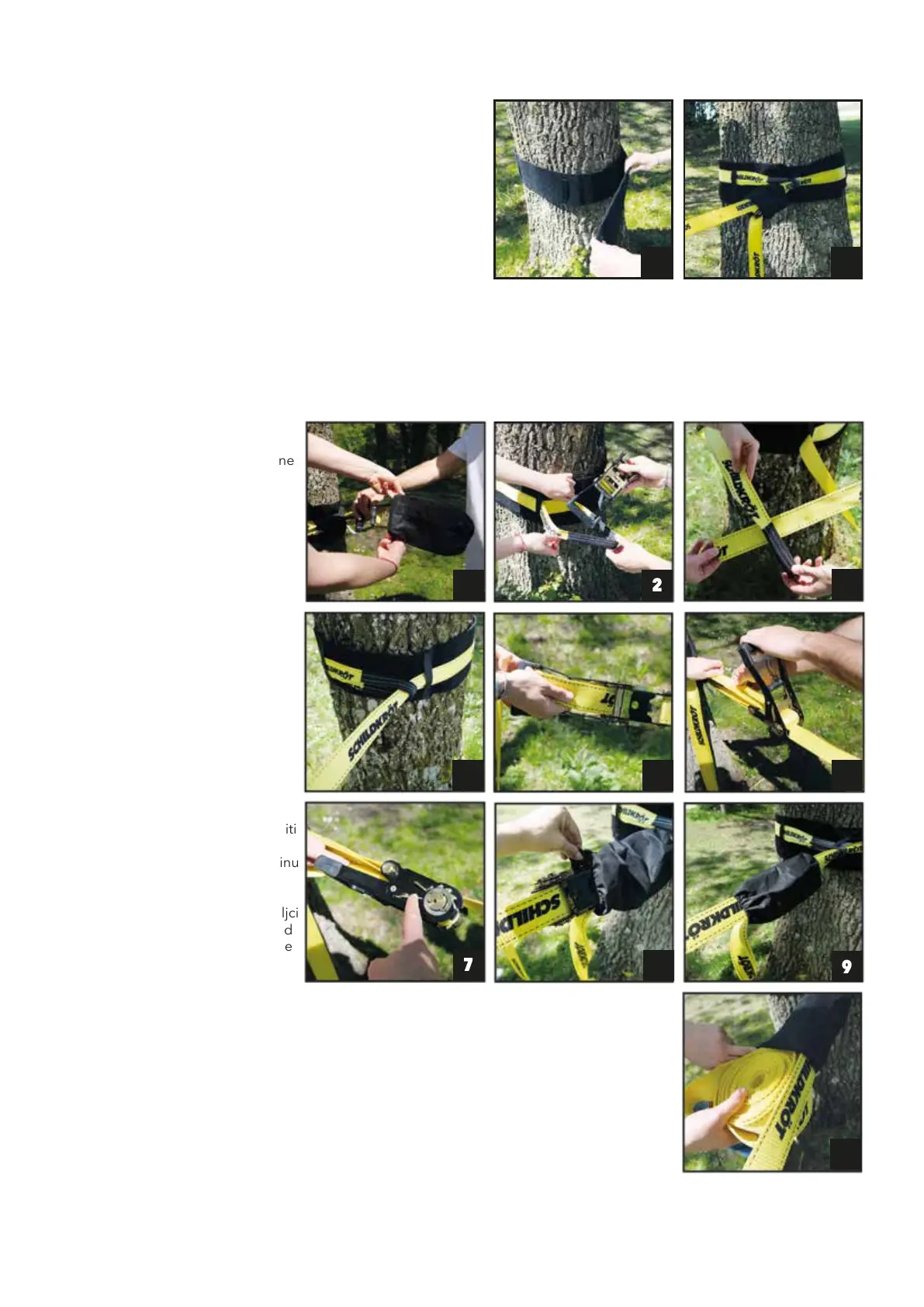 Ne radite nikakve izmjene na originalnom proizvodu. Nikada ne mijenjajte slackline produžujući ga ili vežući ga u čvorove.