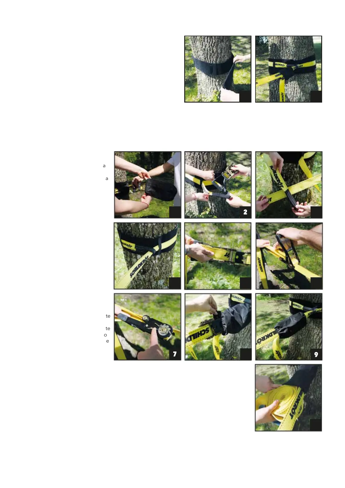 Če kot sidrišče uporabljate drevo, ga morate zaščititi pred poškodbami. Vedno uporabljajte ustrezno zaščito za drevo