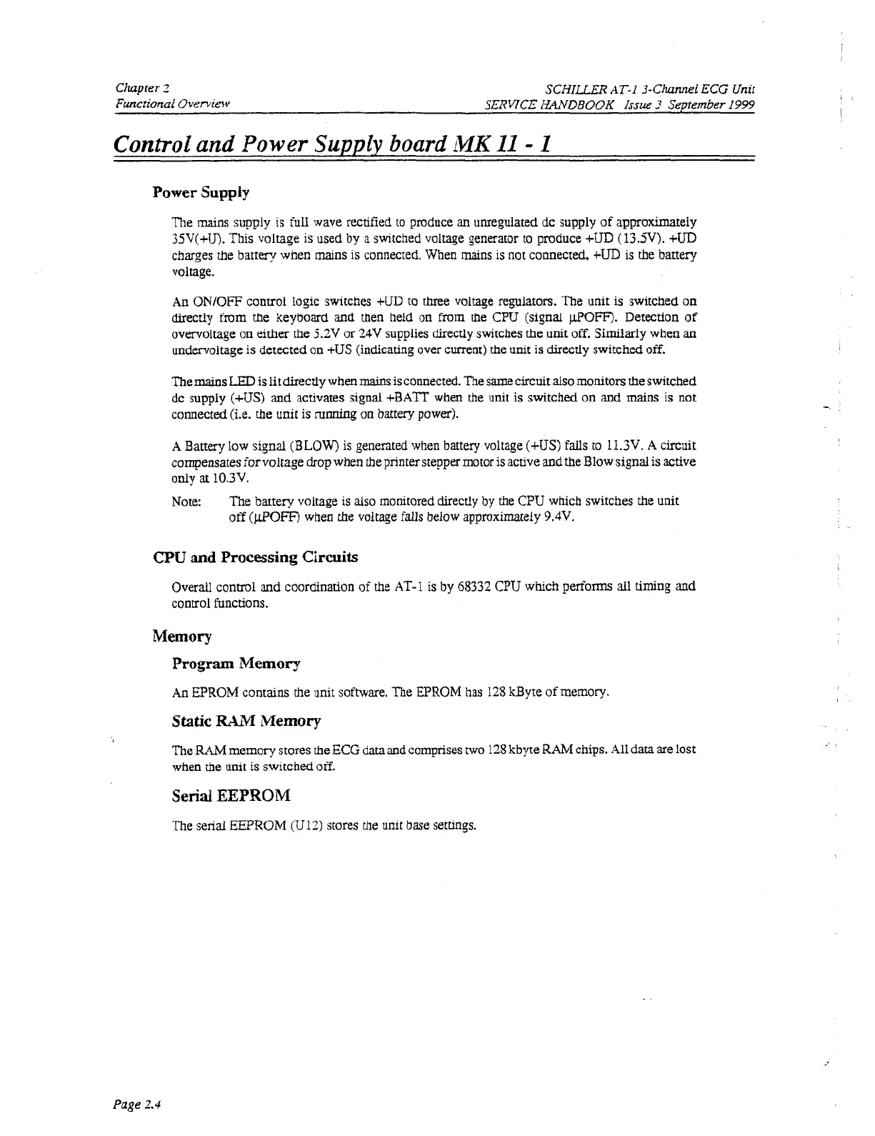 An EPROM contains the unit software. The EPROM