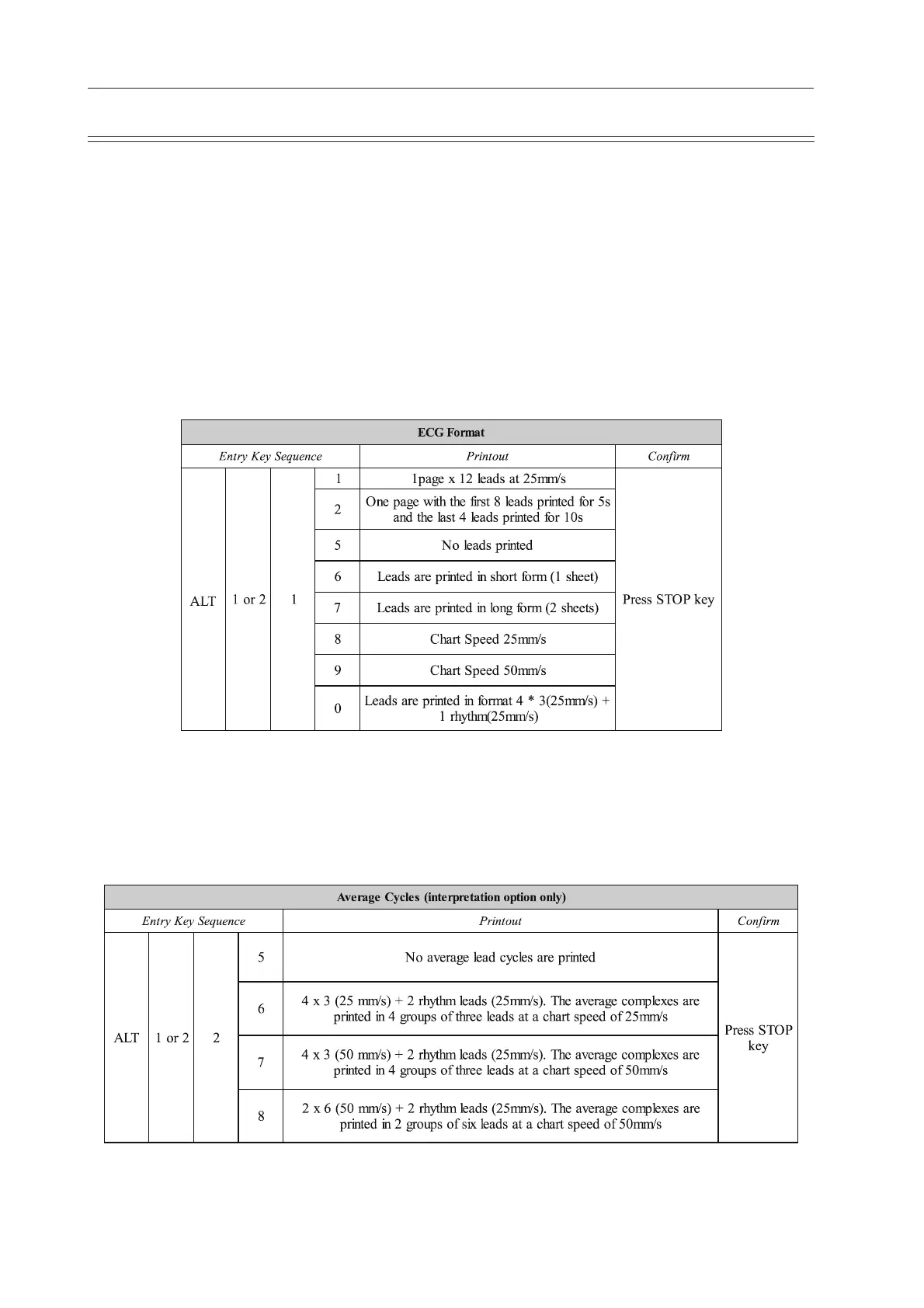 The automatic mode formats are detailed on the following pages. The ECG format is set as