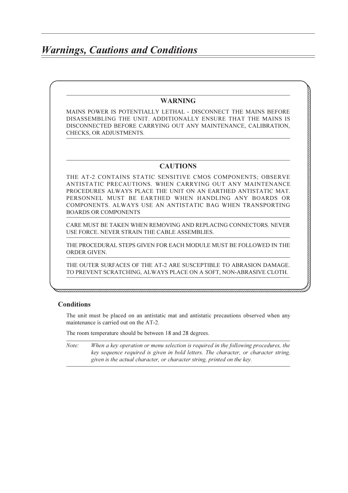 PROCEDURES ALWAYS PLACE THE UNIT ON AN EARTHED ANTISTATIC MAT.