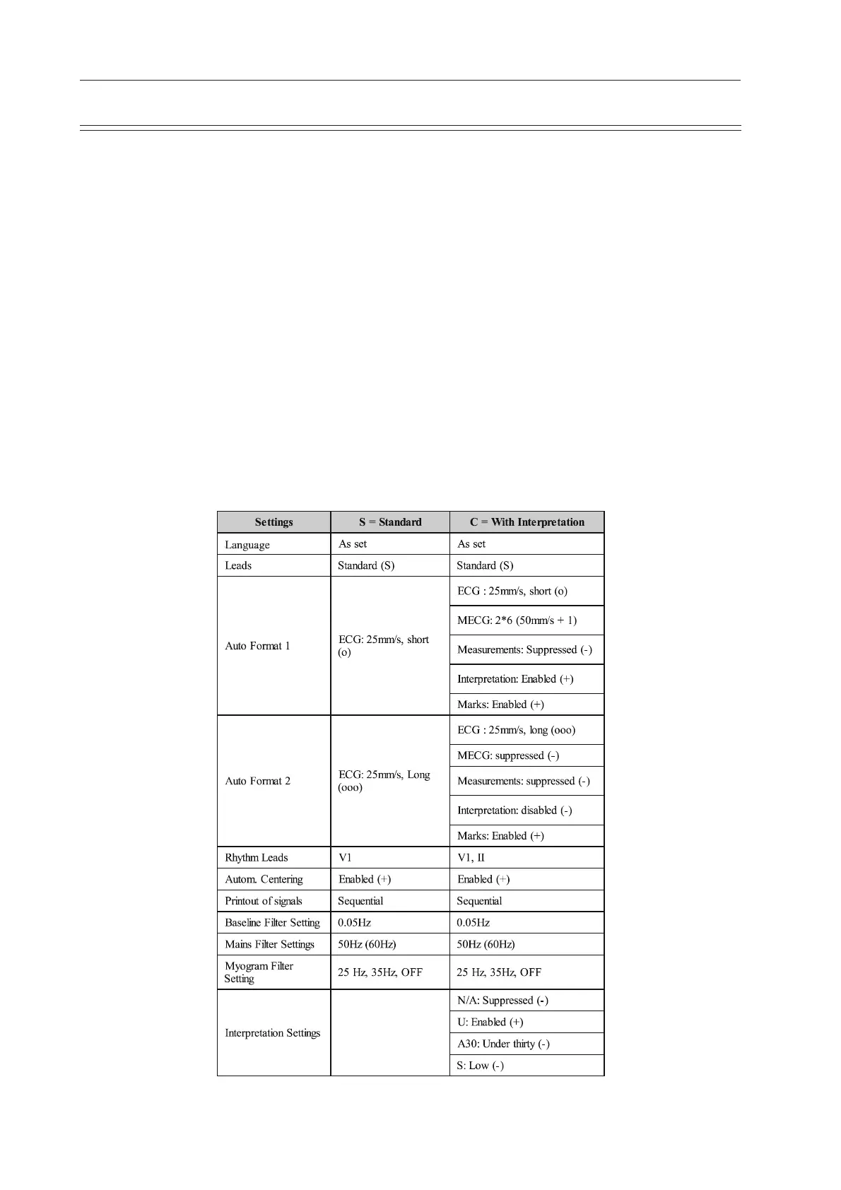 Interpretation settings: N/A:+/- normal/abnormal is written (+) or suppressed (-)