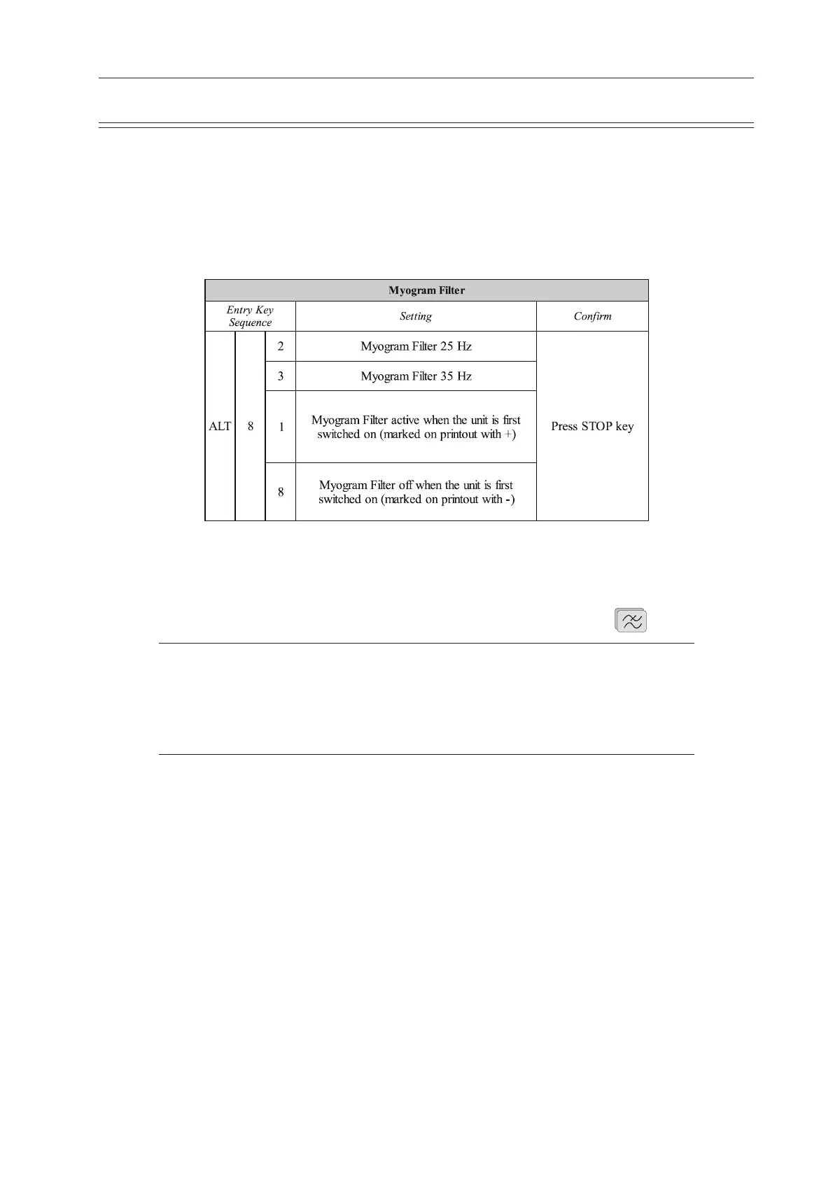 programmed as default when the unit is switched on. When the Myogram filter is on `Filter` is