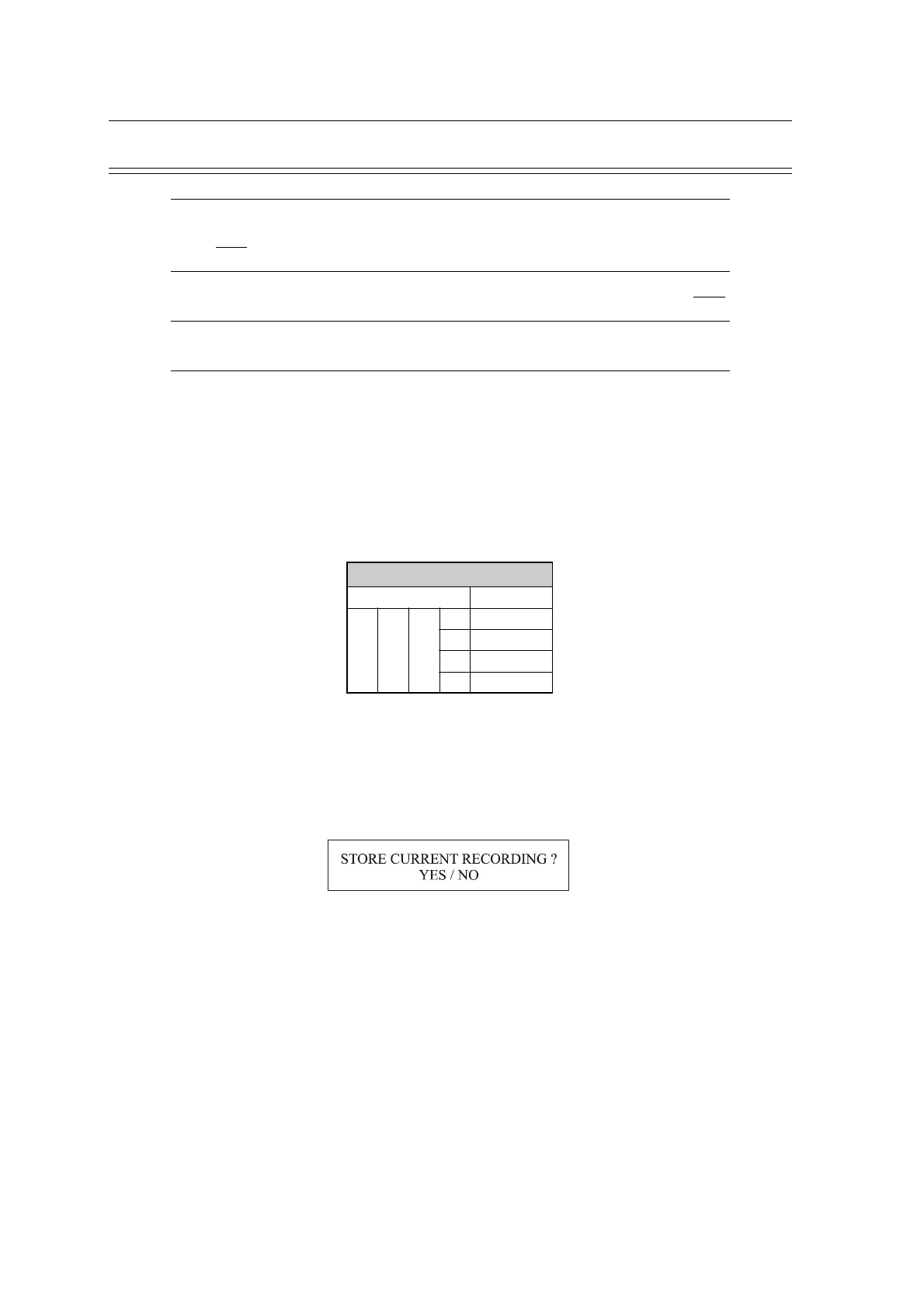 When YES is selected the message `STORING` appears in the message box (under the date and