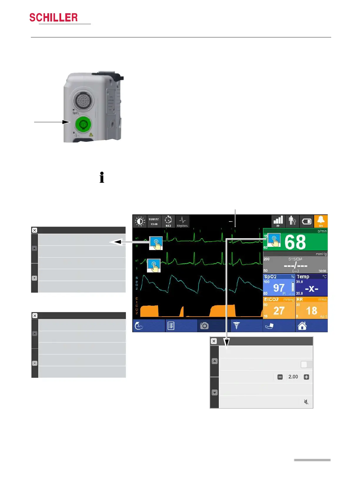 3. Define the ECG settings directly via the Touch screen curve or measurement