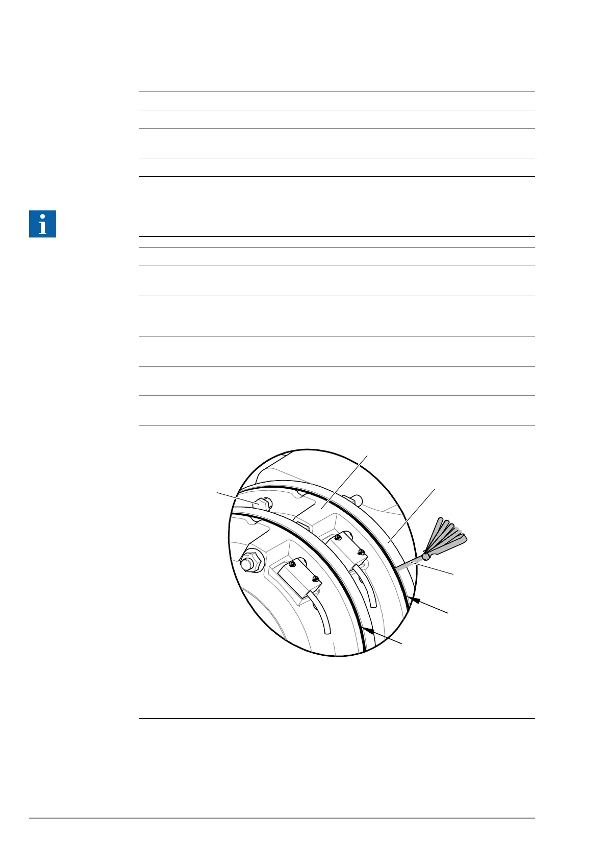 the brake yoke (2). Insert the feeler gauge minimum 20 mm deep.