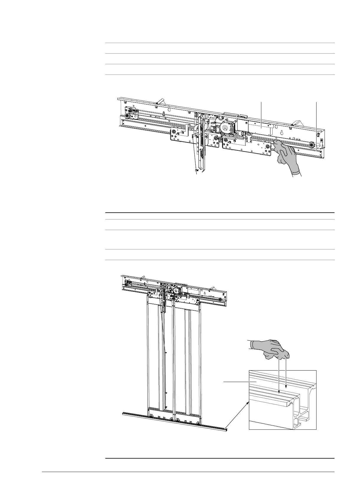 2 Check the complete door drive (2) is clean from debris, etc.
